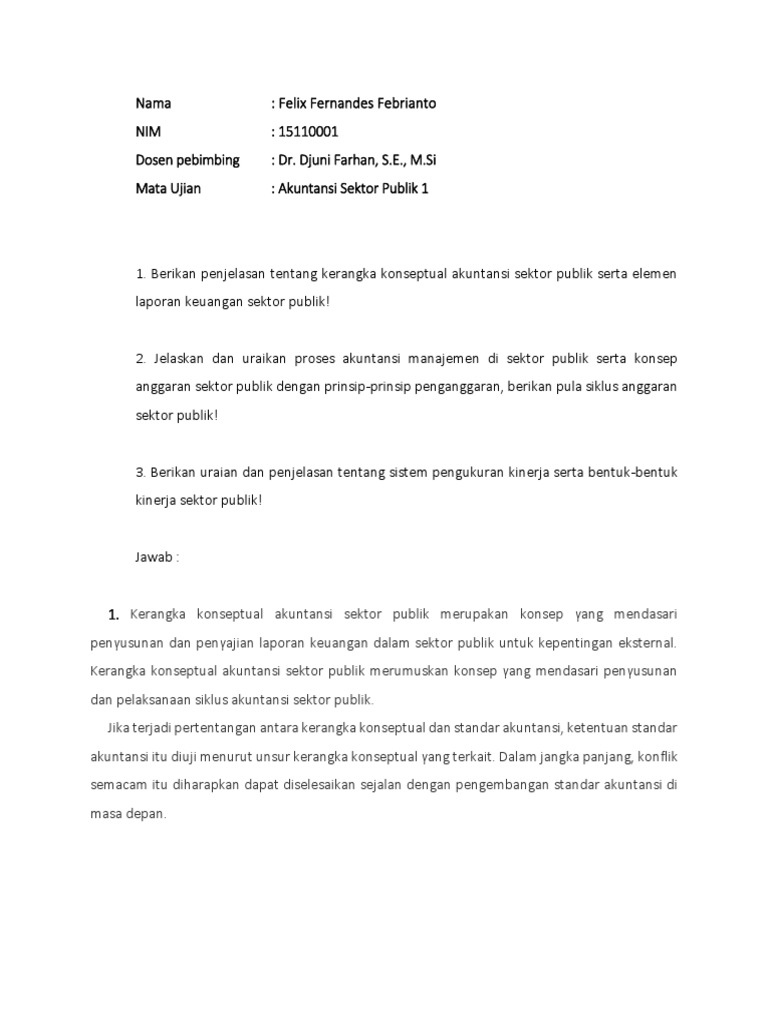 Pada akhir setiap bab, akan diberikan esai yang berbentuk soal uraian buku ini dibagi ke dalam 12 bab, di mana setiap bab menggunakan. Tujuan akuntansi sektor publik adalah memberikan informasi yang berguna untuk mengendalikan manajemen dan pertanggungjawaban. Akuntansi sektor publik oleh mardiasmo buku ini membahas: On studocu you find all the study guides, past exams and lecture notes for this course. Sektor publik dapat dibedakan sektor pemerintahan dan sektor non pemerintahan.
